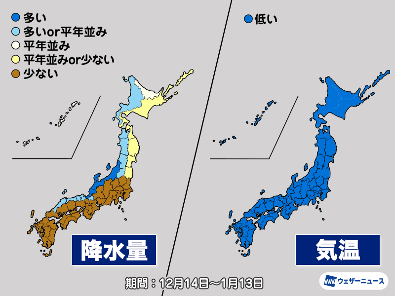 Deleted Account 1 year ago 気象庁1か月予報 寒い年越し 日本海側は積雪増加に注意 ウェザーニュース気象庁1か月予報 寒い年越し 日本海側は積雪増加に注意今日12月12日(木)、気象庁は12月14日から1月13日までの1か月予報を発表しました。年明けにかけて気温は低めで...