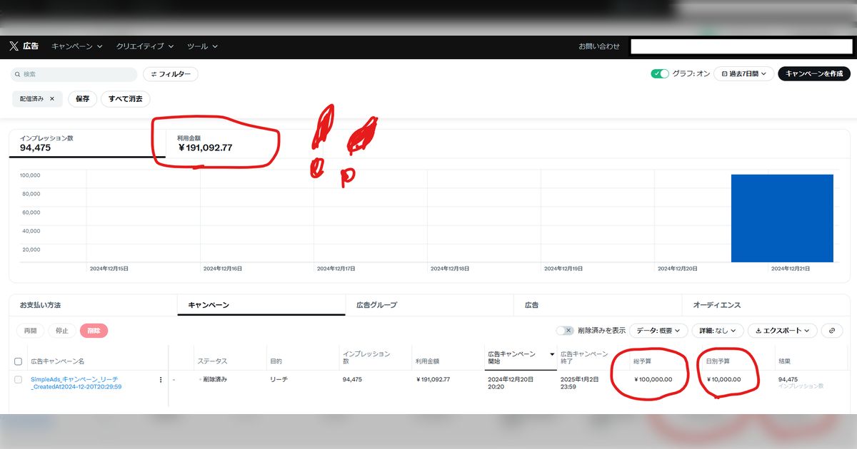 Deleted Account 1 year ago X広告リーチ配信、設定以上の請求に→更に金額が増え続ける模様 posfieX広告リーチ配信、設定以上の請求に→更に金額が増え続ける模様(12/23追記)X広告のリーチ配信で、巨額の引き落としが発生する事例が発生