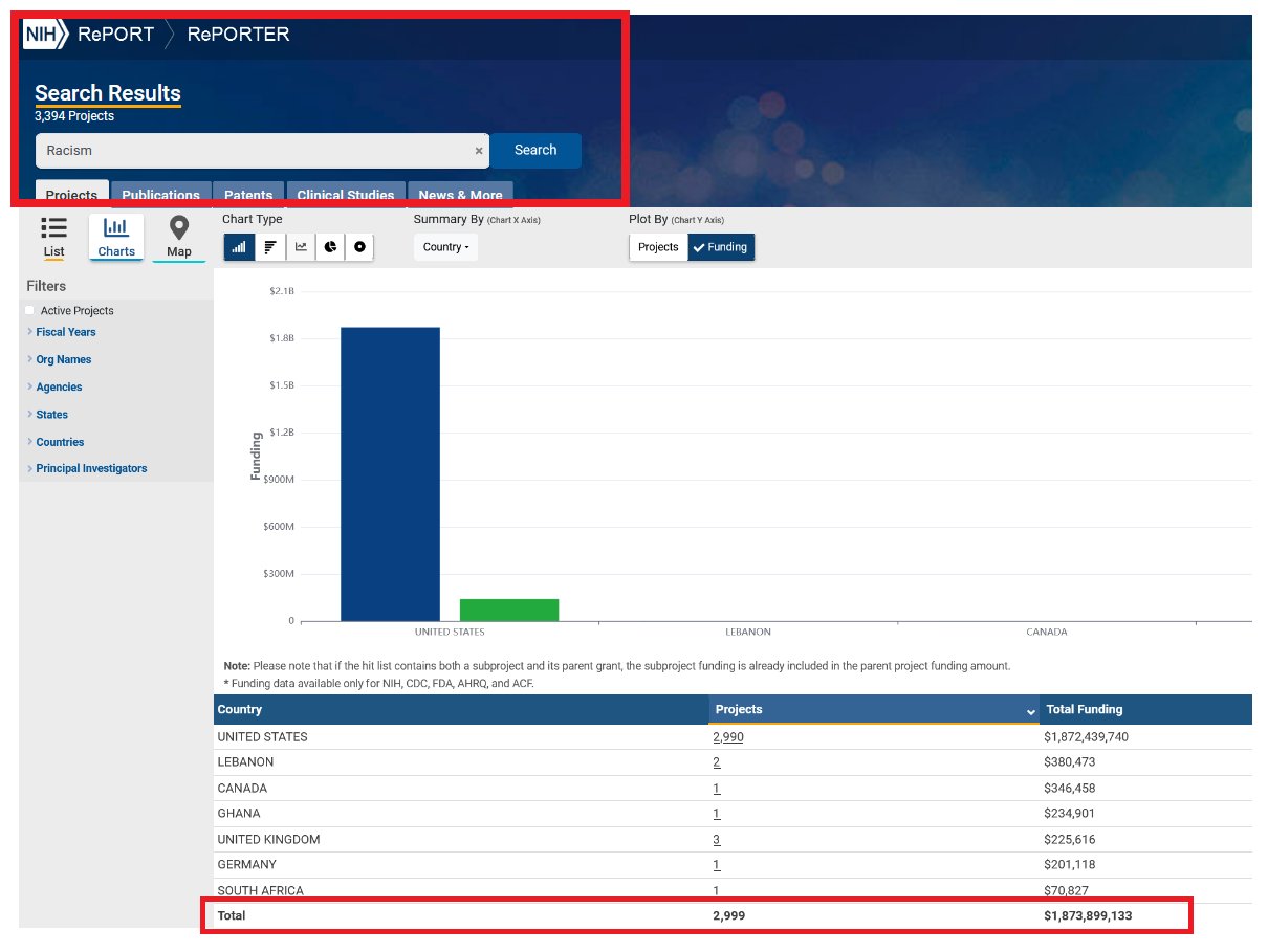 In 2024, the National Institutes of Health (NIH) spent $1.8 billion studying racism including: