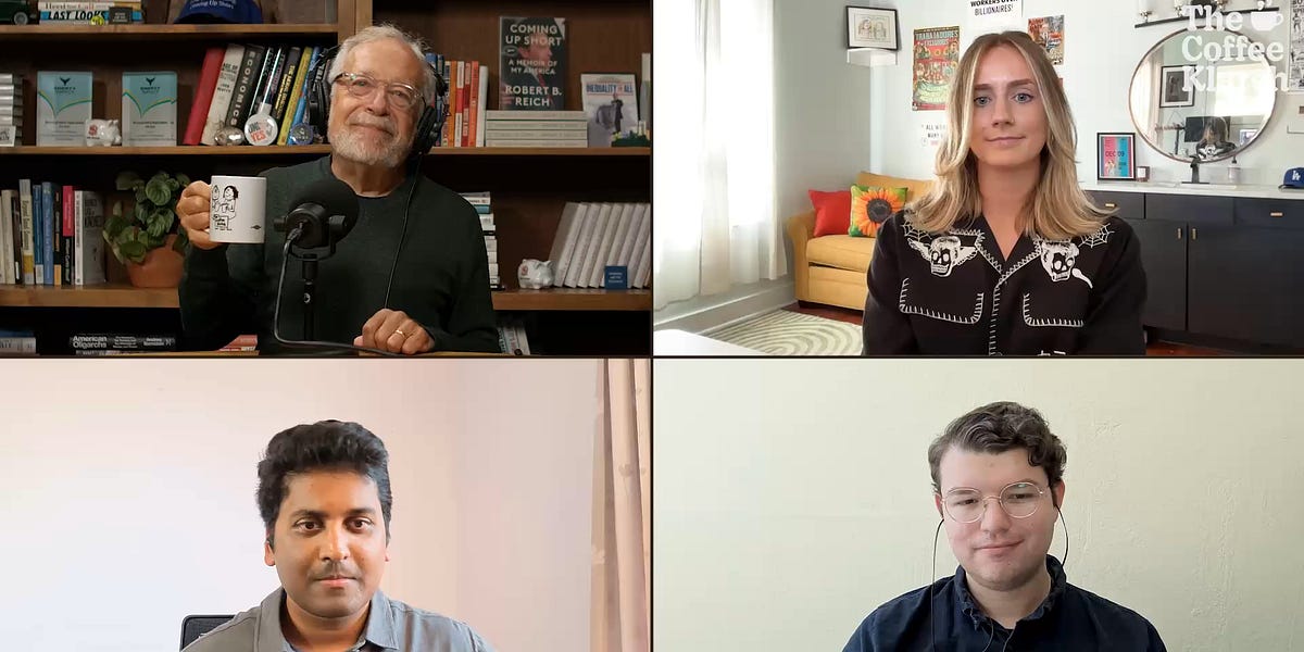 Robert Reich 3 months ago The Dictator’s Demise | The Coffee Klatch for September 27, 2025 The Dictator's Demise | The Coffee Klatch for September 27, 2025With Katie Milne, Vishal Shankar, Michael Lahanas-Calderón, and yours truly, Robert Reich