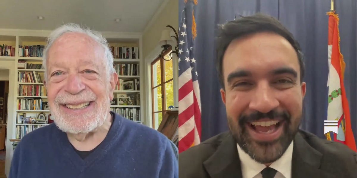 Robert Reich 2 months ago Please join me tomorrow (Wed, October 29) at 9 am Pacific, 12 pm Eastern for my Substack Live interview with Zohran Mamdani Please join me tomorrow (Wed, October 29) at 9 am Pacific, 12 pm Eastern for my Substack Live interview with Zohran MamdaniFriends,