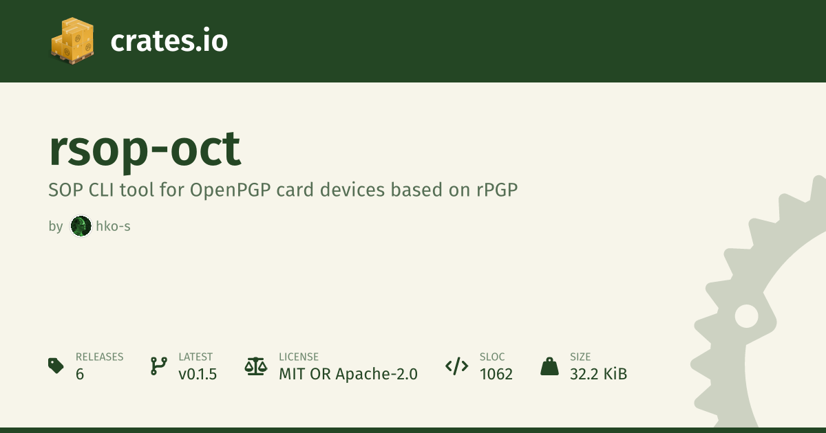 I just released version 0.1.0 of rsop-oct, a new stateless #OpenPGP ("SOP") CLI tool that focuses exclusively on use with OpenPGP card hardware devices:
