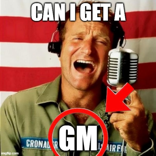 Chaosmagic23 1 week ago Can I get a GM? #gm #plebchain #coffeechain ImgflipGood Morning VietnamAn image tagged good morning vietnam