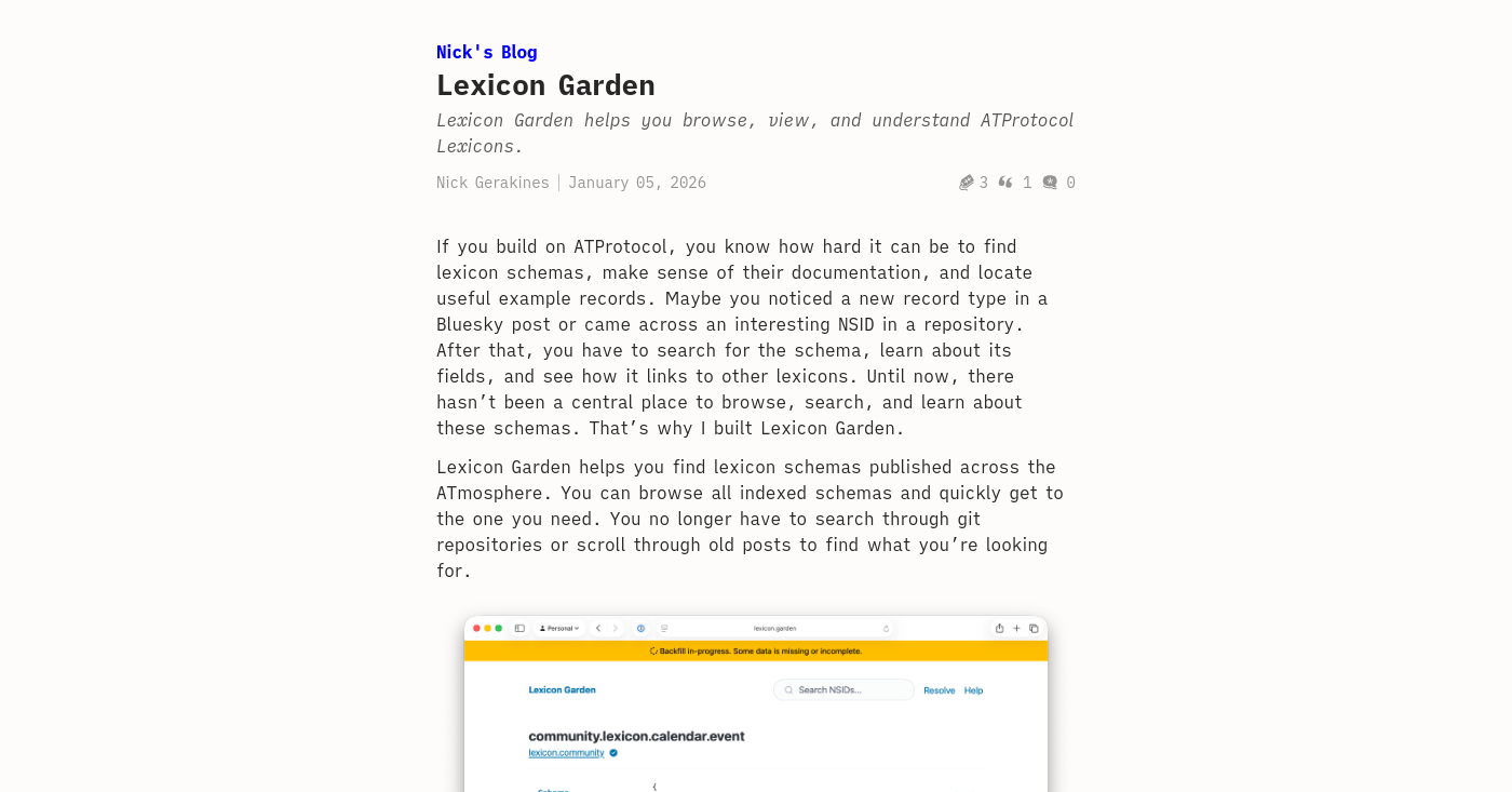 I built [@lexicon.garden@bsky.brid.gy]( ) , a discovery platform for ATProtocol lexicon schemas. If you've ever hunted through repos or old posts trying to find schema definitions and documentation, this is for you. #ATProtocol