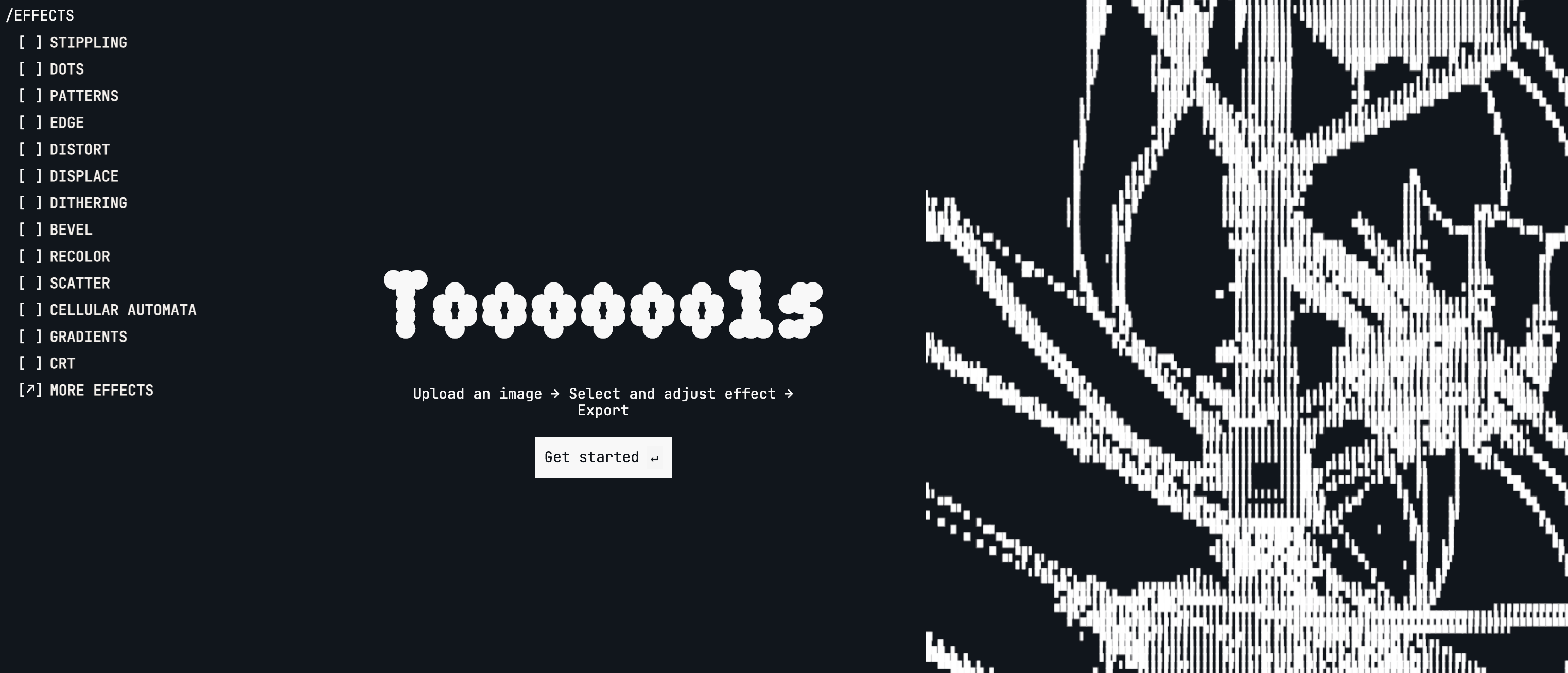 Apply visual effects to images and videos online — glitch, blur, distort, halftone & more.