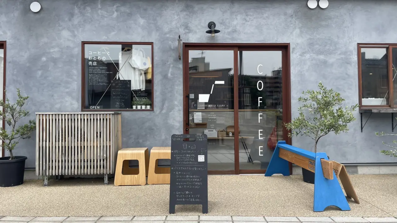 高岡市坂下町、“ちいさな商店街”がコンセプトの「サカサカ」の一角にただずむ「COFFEE KIOSK ESORA」。スペシャルティコーヒーと自家製おとものフードペアリングが楽しめるテイクアウト専門のコーヒースタンドです。
