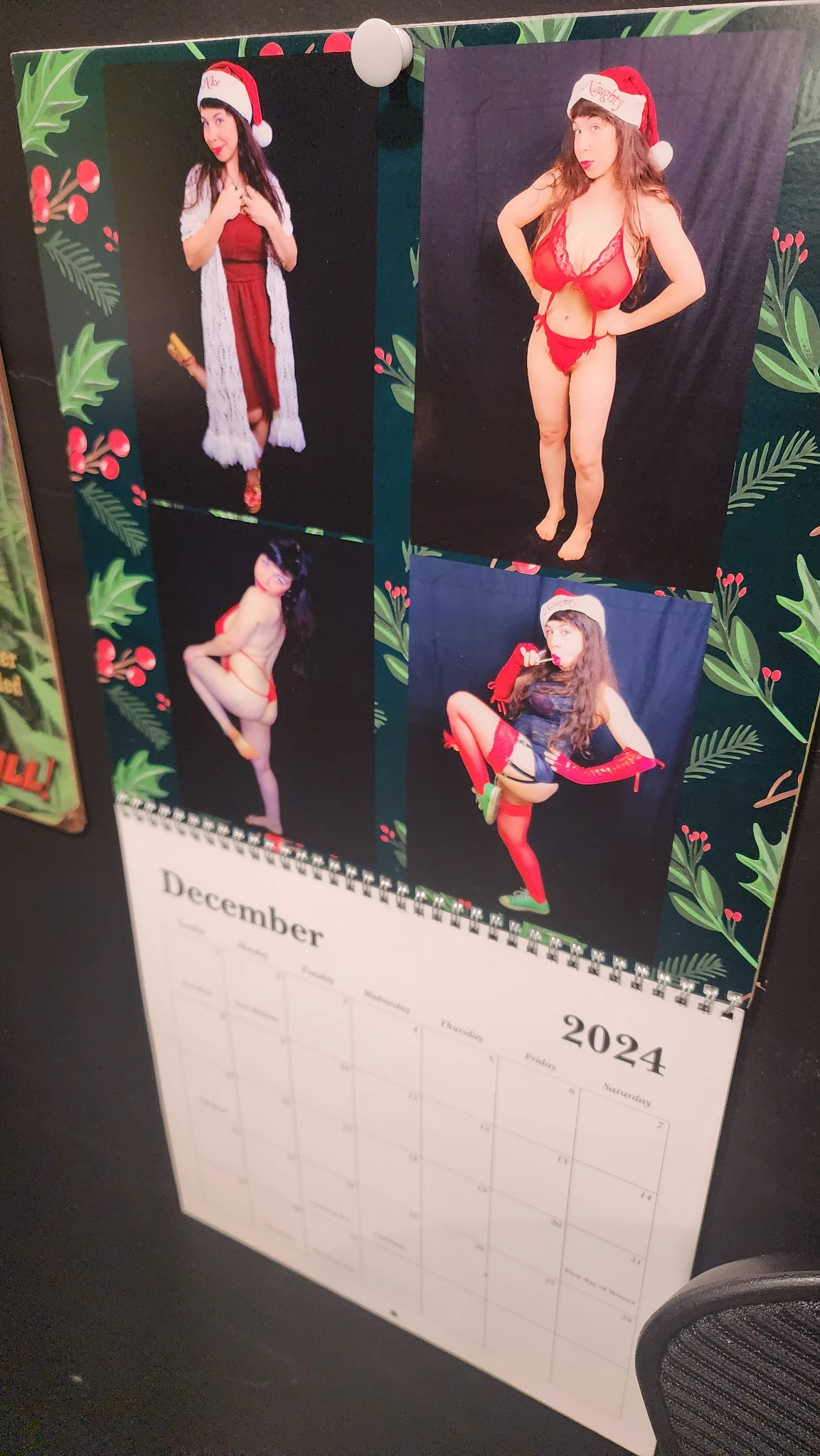 Spencer 1 year ago Got my @DuhLaurien calendar up just in time for the year to wrap Currently designing the 2025 calendar, I think we're gonna try to offer pre-orders this year https://mk.spook.social/files/d93d901c-0fff-47f6-a73e-a34036922362