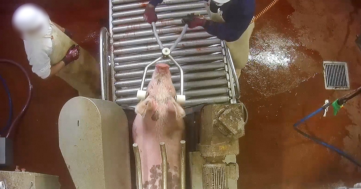 Des cochons paniqués tentent de fuir au moment d’être étourdis. Des animaux sont frappés lors du déchargement. Certains reçoivent des coups d’aiguillon électrique sur la tête. Beaucoup sont tués sous les yeux de leurs congénères. Tout ça pour produire de la viande servie dans des cantines scolaires du département et vendue dans des supermarchés, des boucheries locales et chez les producteurs.