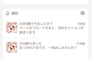 村雲るね☁つじごや 2 years ago ってことで私のクソコード晒しちゃお いつも通りにMisskeyを開くだけで勝手にタイマーして通知をくれる「ミス廃専用ポモドーロタイマー」です GitHub: GitHubGitHub - renem2185/mi_plugin: Some plugin for Misskey written by AiScriptSome plugin for Misskey written by AiScript. Contribute to renem2185/mi_plugin development by creating an account on GitHub. /// @ 0.16.0 ### { name: "ミス廃専用ポモドーロタイマー" version: "0.1.0" author: "@renem2185@mi.tsujigoya.net" description: "タブを開くと勝手にタイマースタートしてくれます リロードすると最初からになるのでご注意を" permissions: ["write:notifications"] config: { timer_for: { type: "number" label: "タイマーの長さ [分]" description: "ポモドーロセッションの長さを変更します、デフォルトは25分です" default: 25 } break_for: { type: "number" label: "休憩時間 [分]" description: "セッション終了後の休憩時間を変更します、デフォルトは5分です" default: 5 } } } // 登場人物たち let noticeIcon = "https://mi.tsujigoya.net/files/d2053e36-3b54-45eb-a34c-00faade846f2" let timerNotice = { header: `{Plugin:config.timer_for}分経ちました` body: "おつかれさまです、一休みしませんか?" icon: noticeIcon } let brakeNotice = { header: `{Plugin:config.break_for}分休憩できましたか?` body: "ページをリロードすると、次のセッションが始まります" icon: noticeIcon } let millisecond = 1 // using Core:sleep() let second = 1000*millisecond let minute = 60*second // やること @createNotice(notice){ Mk:api("notifications/create", notice) } @main() { Core:sleep(Plugin:config.timer_for*minute) createNotice(timerNotice) Core:sleep(Plugin:config.break_for*minute) createNotice(brakeNotice) } main() https://mi.tsujigoya.net/files/49e460ef-2420-449e-b96b-4a3483fb12d1 https://mi.tsujigoya.net/files/d2053e36-3b54-45eb-a34c-00faade846f2