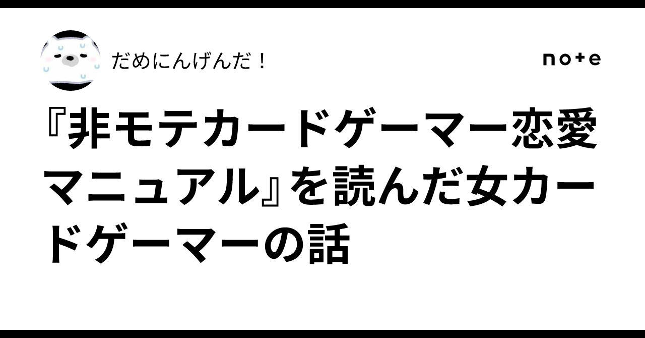 いかのあし 2 months ago 良い記事 note(ノート)『非モテカードゲーマー恋愛マニュアル』を読んだ女カードゲーマーの話|だめにんげんだ!■はじめに こんにちは。 見て下さりありがとうございます。 面白いnoteを拝見し 「女プレイヤー側の目線...