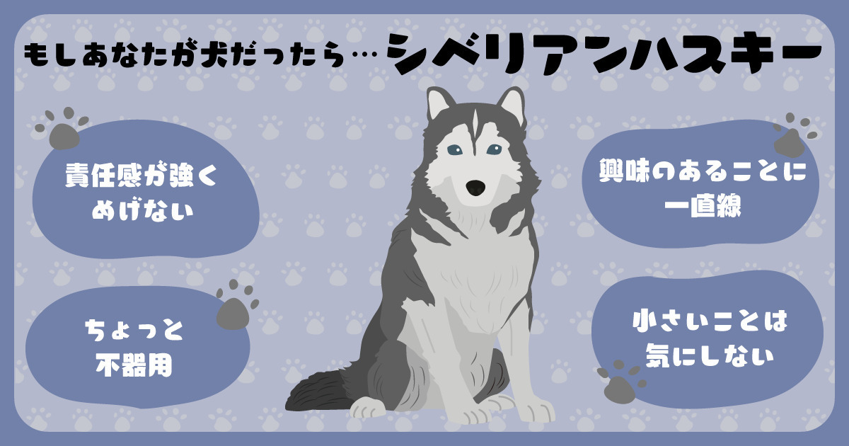 zaoriku⚡️ 0 years ago zaorikuが犬だったら【シベリアンハスキー】です🐶! 責任感が強く、めげない。ちょっと不器用。興味のあることに一直線。小さいことは気にしない もしも犬だったら! ホイミー診断結果は【シベリアンハスキー】でした!もしも犬だったら診断 | ホイミーあなたが犬だったら【シベリアンハスキー】です!あなたってこんな人責任感が強く、明るく前向きでちょっ...