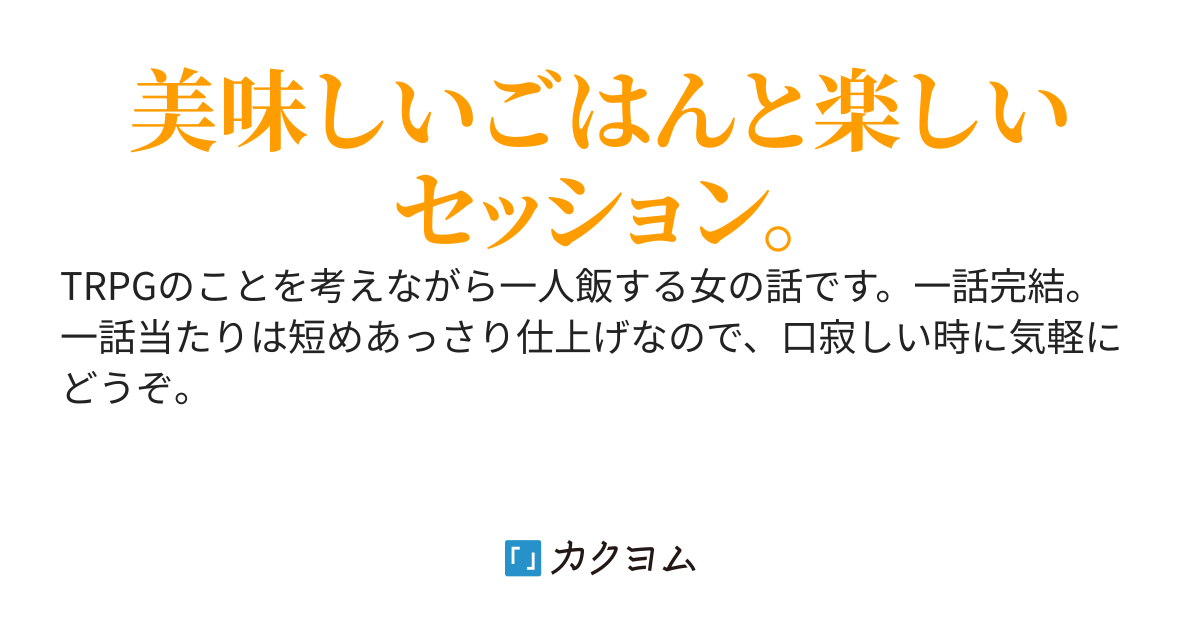 やこさん(おなかに赤ちゃんがいます):sheep_hop::duckdance: 1 year ago セッション反省飯とは! TRPGのことを考えながらダラダラ飯食ってるねーちゃんの独り言短編集である!! 一話5分くらいで読める短い小話シリーズだからよかったら読んでって!!! #一次創作 #TRPG #短編小説 カクヨム - 「書ける、読める、伝えられる」新しいWeb小説サイトセッション反省飯(夜狐) - カクヨム美味しいごはんと楽しいセッション。