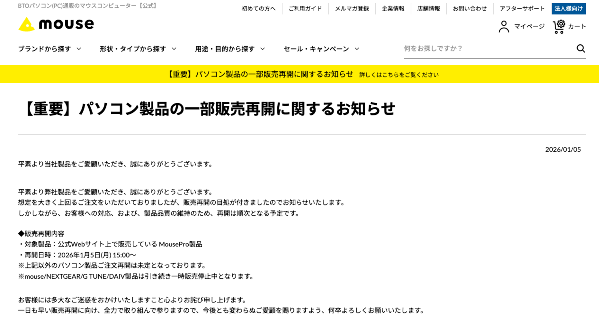 :rss: ASCII.jp - トップ 4 weeks ago マウスコンピューターの販売再開はMouseProから、他シリーズの再開時期は未定 ASCII.jpマウスコンピューターの販売再開はMouseProから、他シリーズの再開時期は未定マウスコンピューターが「MousePro」製品の販売を1月5日15時から再開。注文集中による販売停止の経緯と、今後... #ascii
