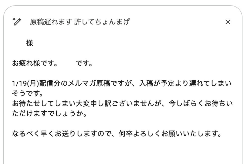 :rss: ASCII.jp - トップ 2 weeks ago GmailのAI代筆機能がすごい 「許してちょんまげ」がちゃんとしたお詫びに ASCII.jpGmailのAI代筆機能がすごい 「許してちょんまげ」がちゃんとしたお詫びにGmailのGemini支援機能「文書作成サポート(Help me write)」が話題だ。SNS(X)では「便利すぎて、これがないと... #ascii #AI
