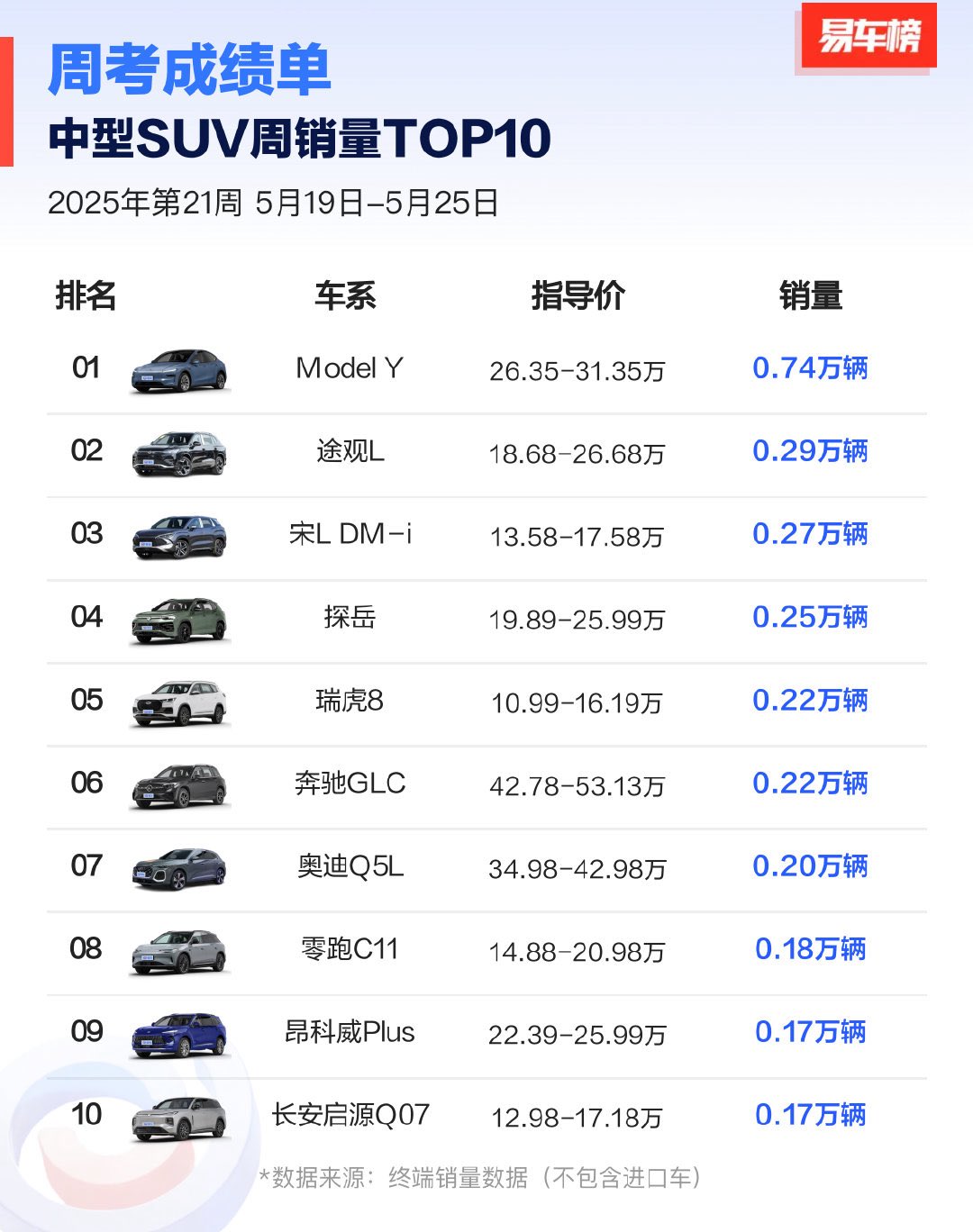 Tesla’s Model Y is the best selling car in the list of Top 10 weekly sales of mid-size SUVs for the week May.19-May.25 in China🔥