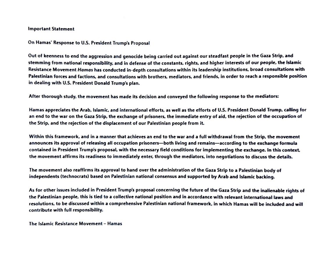 So far, Hamas is said it is willing the release the captives, but indicated it wants to enter negotiations on other points, which is presumably happening through mediators. But Trump has demanded the Palestinian militant group act quickly.