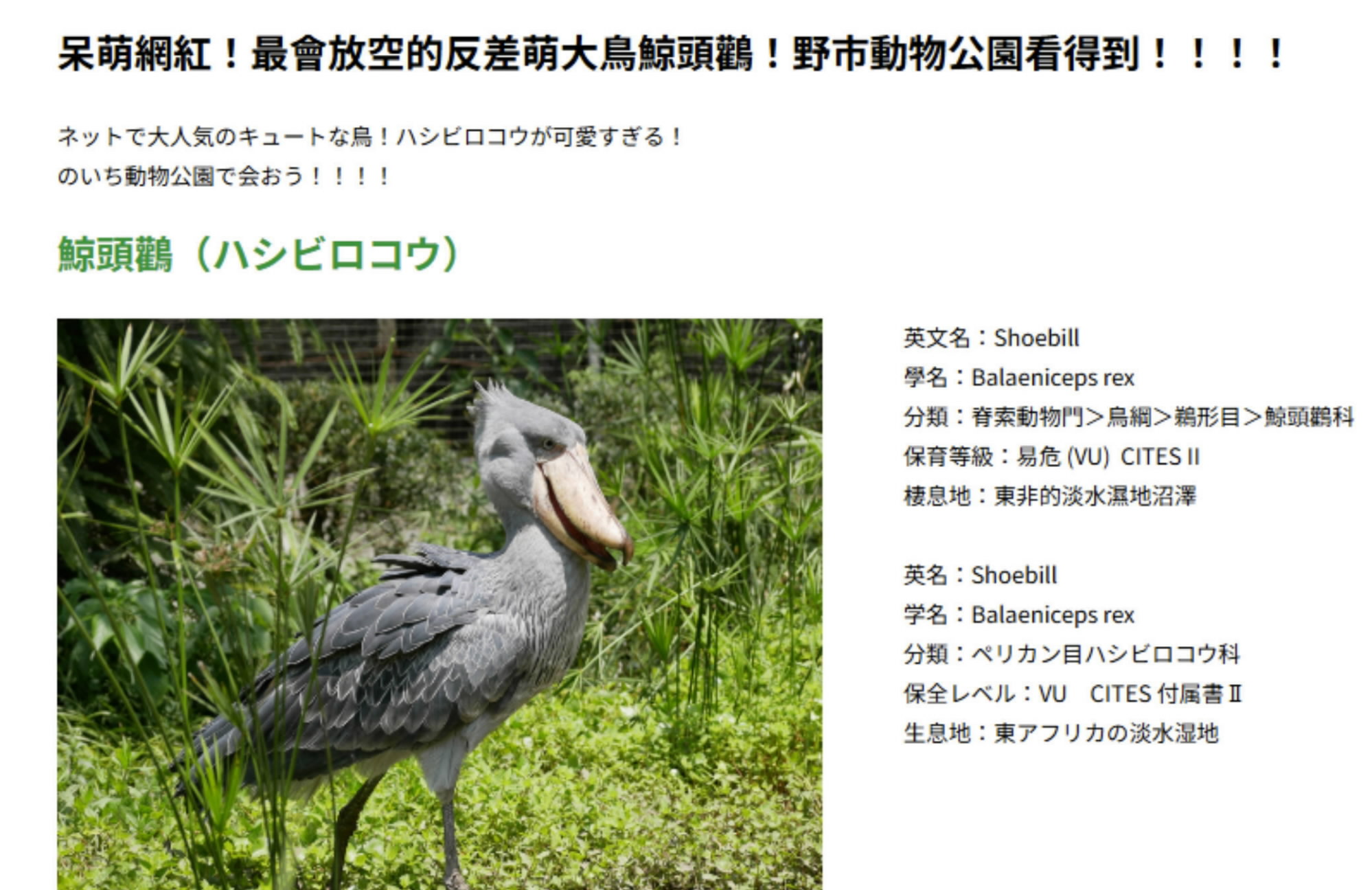 まぐぴ 2 weeks ago 「鯨頭鸛」って?、ハシビロコウなのね かわいすぎる「鯨頭鸛」はあの鳥、彩面山魈は? 台湾語で「のいち動物公園」発信 研修の台北動物園職員が紹介 | 高知新聞 かわいすぎる「鯨頭鸛」はあの鳥、彩面山魈は? 台湾語で「のいち動物公園」発信 研修の台北動物園職員が紹介 | 高知新聞台湾人研修生が作成したのいち動物公園の台湾語ページ 県立のいち動物公園(香南市)のウェブサイトに、... #fedibird