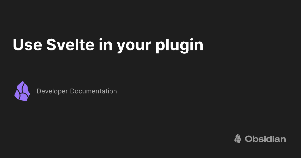 ₍ vᴗs ₎ 2 weeks ago Developer DocumentationUse Svelte in your plugin - Developer DocumentationThis guide explains how to configure your plugin to use Svelte, a light-weight alternative to traditional frameworks like React and Vue. Svelte is ... すべるてでプラグインかけるんだ