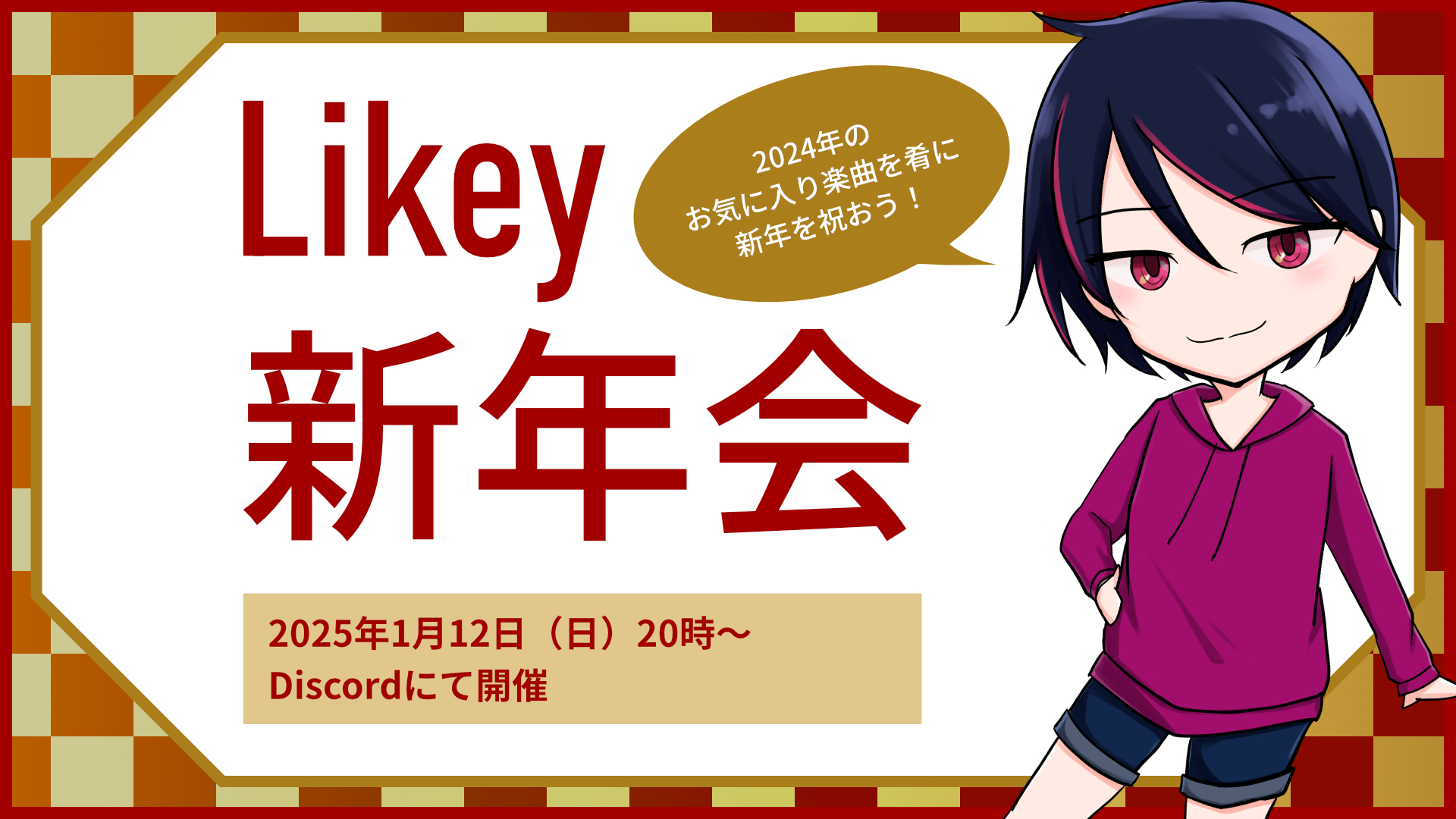 npub1nxse...09tm 1 year ago 1月12日(日)夜8時から、 Discordの音楽鯖にてオンライン新年会をやる予定です! 2024年のお気に入り曲を持ち寄って、それを肴にワイワイできればと思っております🙌 これまでサーバーや配信に参加していない方も歓迎です🙆 聞き専もチャットもボイチャも可です~。 Discordへの参加はコチラのリンクからどうぞ↓ [discord.gg/YwKmuYcG](DiscordDiscord - Group Chat That’s All Fun & GamesDiscord is great for playing games and chilling with friends, or even building a worldwide community. Customize your own space to talk, play, and h... ) https://porcini.us-east.host.bsky.network/xrpc/com.atproto.sync.getBlob?did=did:plc:xx7h2bawu5rs5lmcprokjvx4&cid=bafkreifuze2kdixm6m5arejb6v6557sfrg37bl6rmgdqdfgdj5rlyxgu7e
