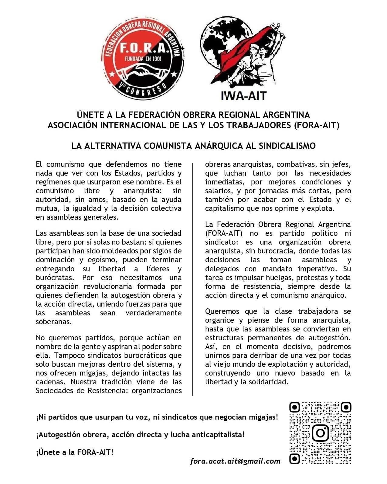 The FORA membership in the International Workers' Association (AIT-IWA) ha...