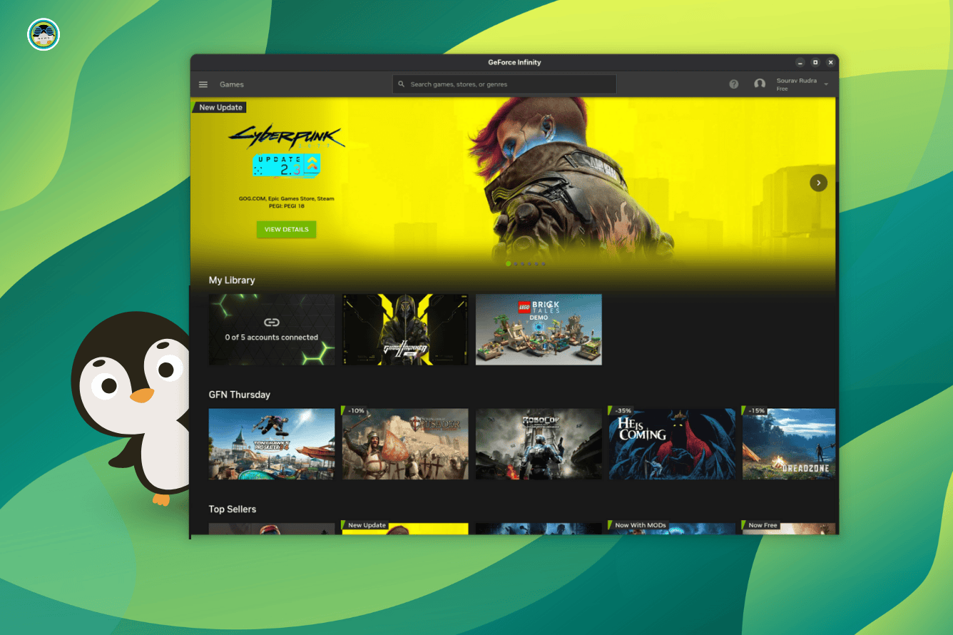 Renaud Lifchitz 5 months ago NVIDIA's Cloud Gaming Service GeForce NOW Has an App on Linux It's FOSSNVIDIA's Cloud Gaming Service GeForce NOW Has an App on LinuxAlthough it is an unofficial app, you can use this app to play GeForce NOW games on Linux with some ease and extra features.