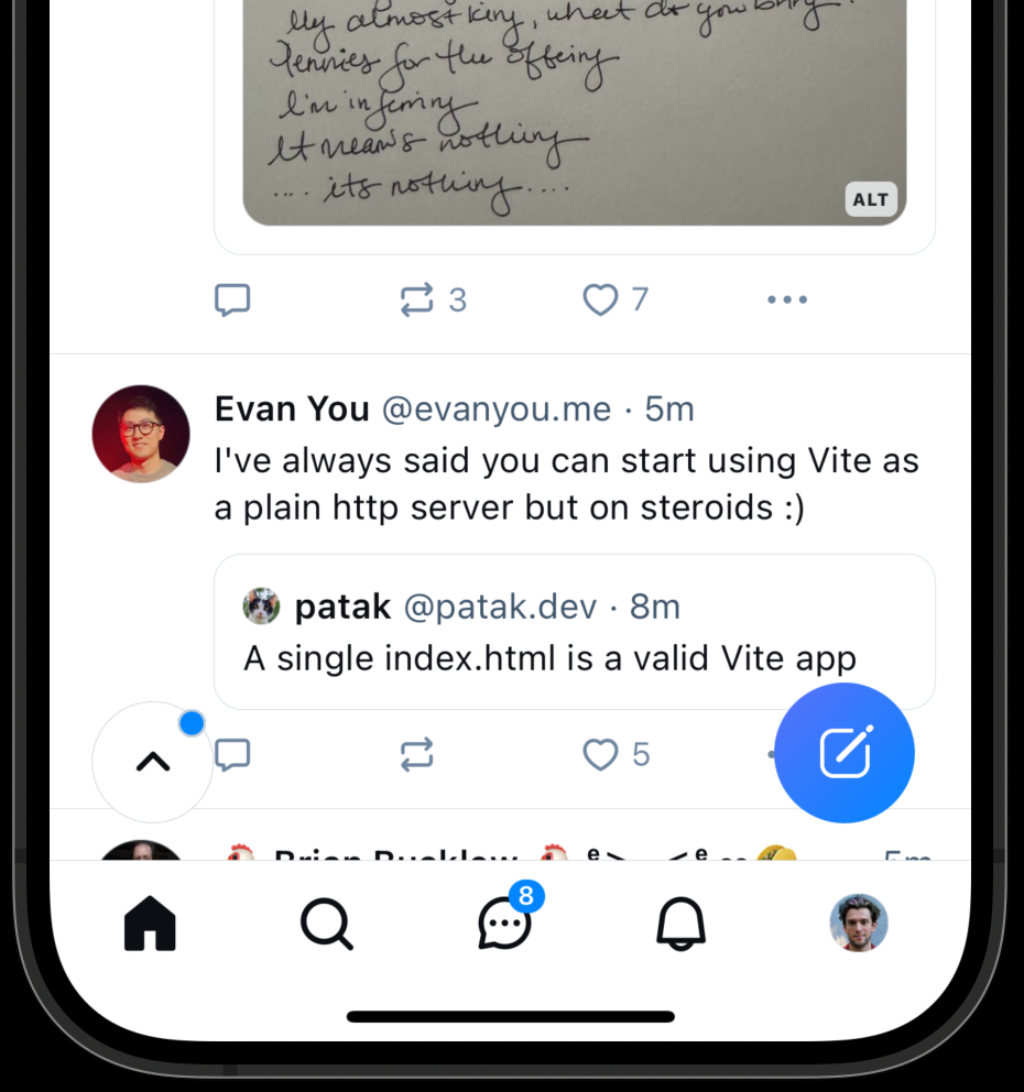 on the left picture, the "new stuff" badge is in a βscroll to topβ button; on the right picture, it is inside the home tab bar button