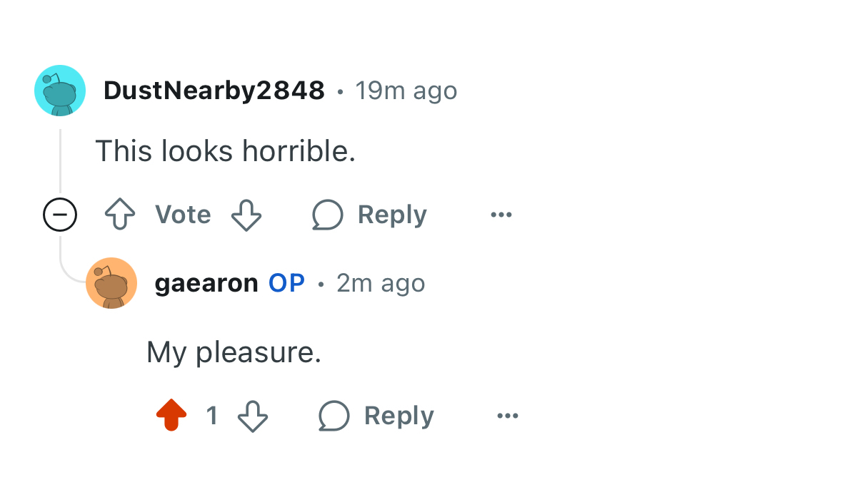 half of RSC article comments iβm arguing with on reddit are people who say we should just use PHP and all the client-side stuff is stupid and bad, while the other half is people saying we should always create reusable JSON APIs for everything, and doing anything else on the server is stupid and bad