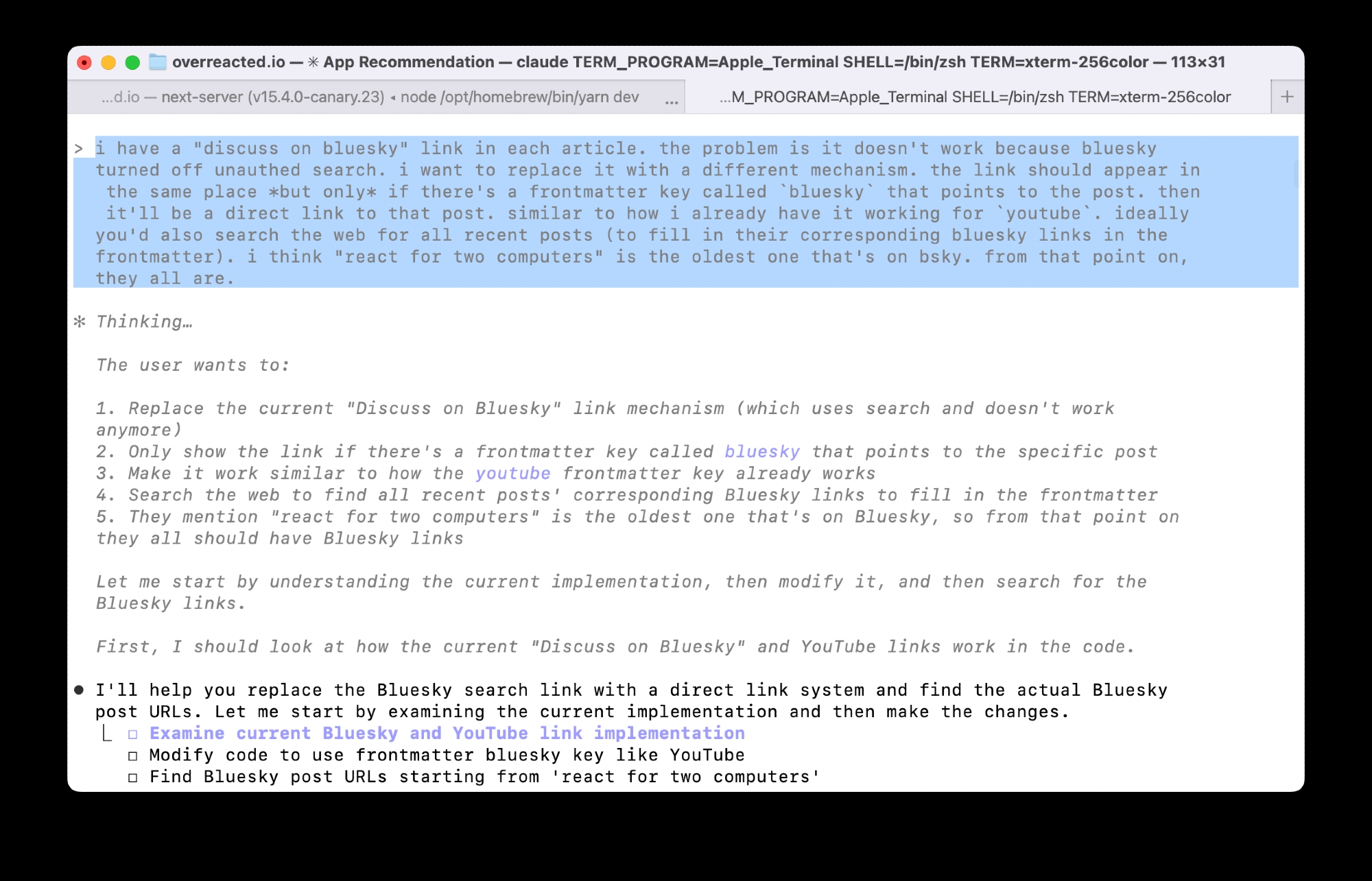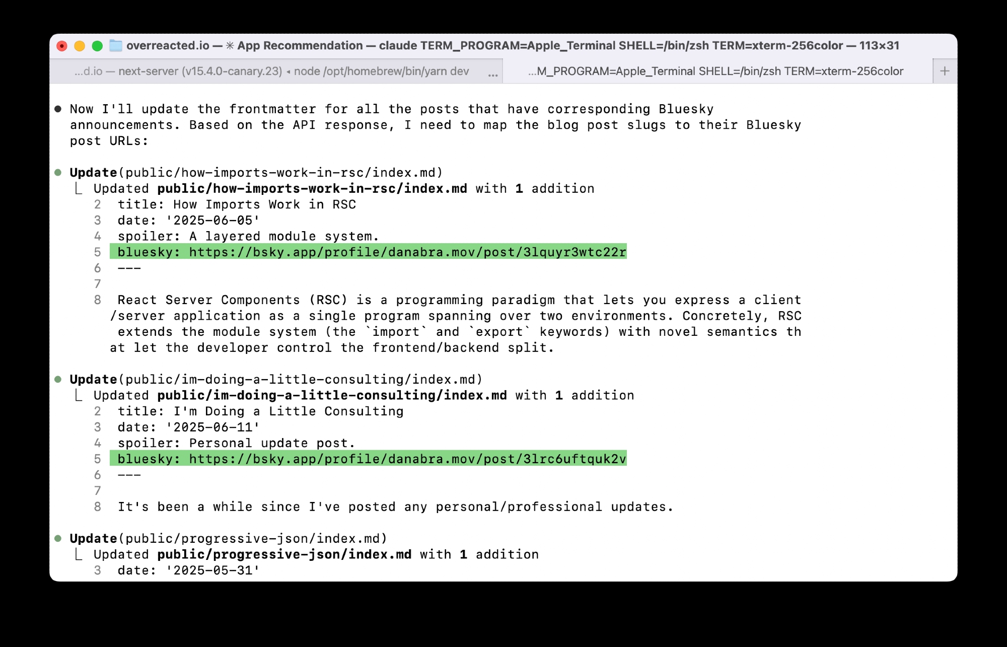 Add bluesky frontmatter key to 15 recent blog posts with their...