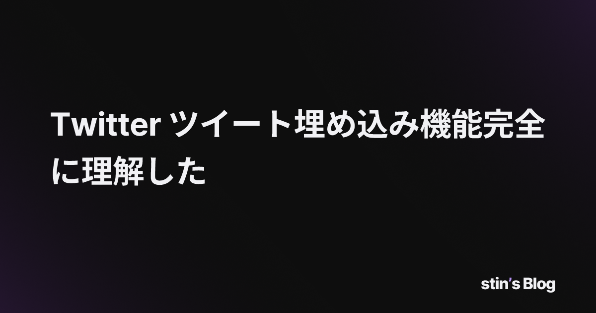きりの 6 months ago のぞき窓のXサムネイル表示をこっちのやり方に置き換えようかなぁ。 > Twitter ツイート埋め込み機能完全に理解した Twitter ツイート埋め込み機能完全に理解した | stin's BlogTweet URL を Tweet 埋め込みに変換して表示するように実装しました Tweet の URL だけを Markdown に記述すると ↓ Twee...