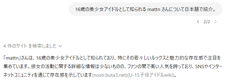 mattn 🛡️ 1 year ago 16歳美少女は存在した。 X (formerly Twitter)`('-' )’ (@argonbay) on X@mattn_jp 尋ねてみました。